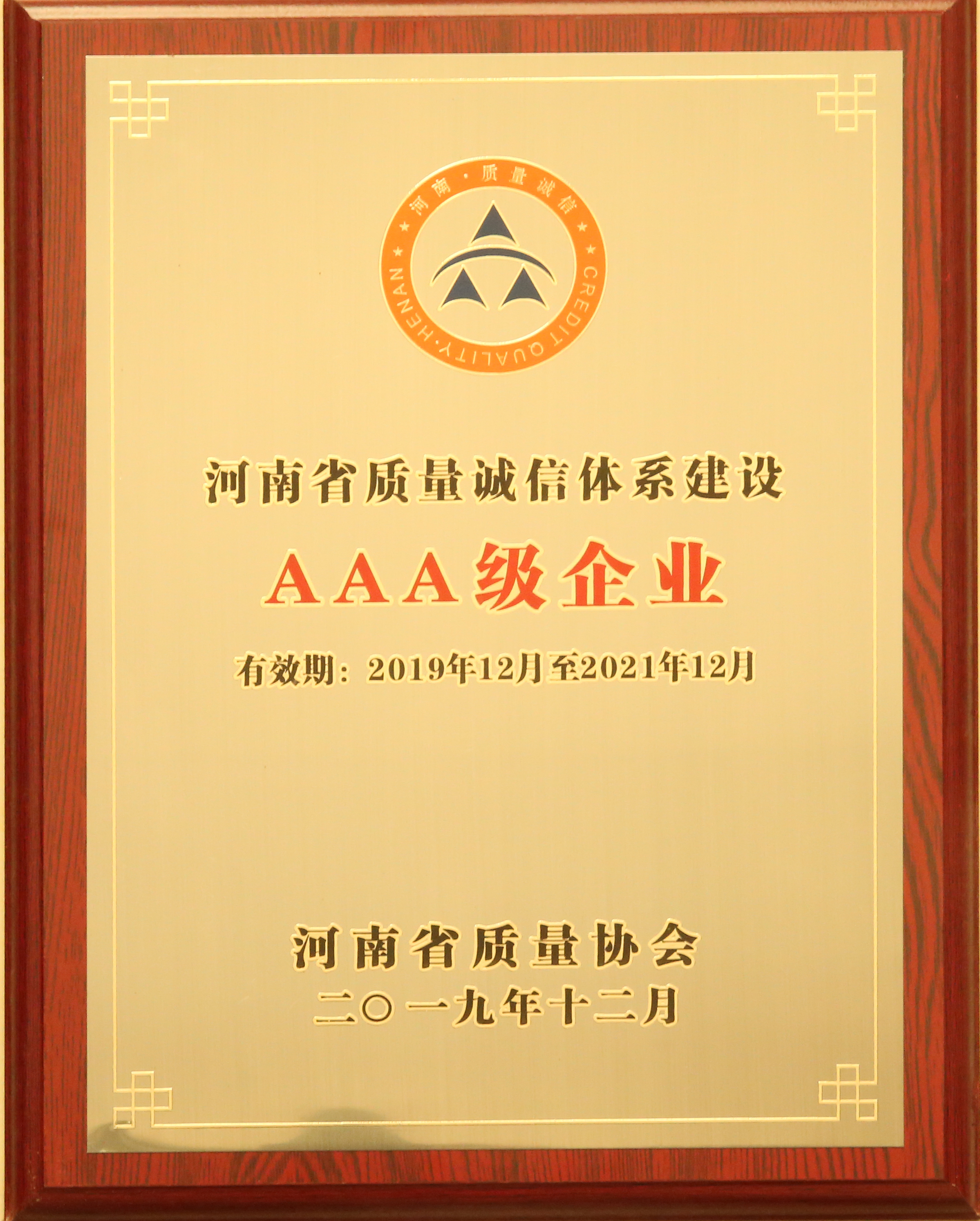 河南省質(zhì)量誠信體系建設(shè)AAA級企業(yè)